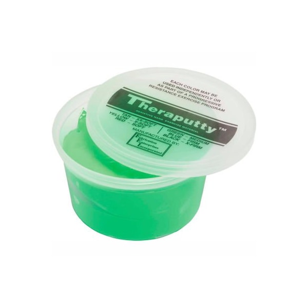 Theraputty scented exercise putty, apple, green, medium, 1 pound exercise putty is used for hand therapy and to strengthen hand grasp. Scented theraputty hand exercise material makes hand therapy more pleasant for youngsters. Using scented putty is a fun way for children to develop grip strength and stay attentive and participate. Tan (vanilla) is xx-light, yellow (banana) is x-light, red (cherry) is light, green (apple) is medium.