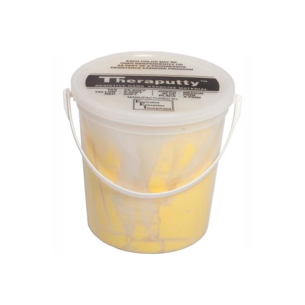 Theraputty scented exercise putty, banana, yellow, x-light, 5 pound exercise putty is used for hand therapy and to strengthen hand grasp. Scented theraputty hand exercise material makes hand therapy more pleasant for youngsters. Using scented putty is a fun way for children to develop grip strength and stay attentive and participate. Tan (vanilla) is xx-light, yellow (banana) is x-light, red (cherry) is light, green (apple) is medium.