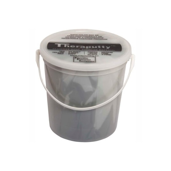 Theraputty standard exercise putty, black, x-firm, 5 pound cando theraputty hand exercise material is the standard in resistive hand exercise material. Each color-coded putty has a different consistency ranging from xx-soft for strengthening the weakest grasp to extra-firm for developing a stronger grip. Available in convenient easy-to-open plastic containers (2, 3, 4 and 6 ounce) for individual patients to use at home and a choice of larger containers (1 and 5 pound) for the hospital or clinic. Cando theraputty material is gluten, latex and casein free. 5 lb. - black - x-firm.