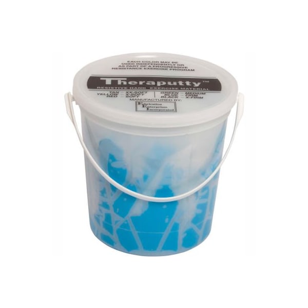 Theraputty standard exercise putty, blue, firm, 5 pound cando theraputty hand exercise material is the standard in resistive hand exercise material. Each color-coded putty has a different consistency ranging from xx-soft for strengthening the weakest grasp to extra-firm for developing a stronger grip. Available in convenient easy-to-open plastic containers (2, 3, 4 and 6 ounce) for individual patients to use at home and a choice of larger containers (1 and 5 pound) for the hospital or clinic. Cando theraputty material is gluten, latex and casein free. 5 lb. - blue - firm.
