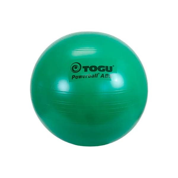 Togu abs powerball premium, 65 cm (26 in), green abs powerball premium is available in four sizes to meet each user's requirements. The togu "double groove" design provides traction and helps prevent the ball from rolling away. The abs (anti-burst system) provides an added level of puncture-resistant safety. Abs weight limit is substantially less than the ball's weight capacity. The total weight capacity of this item is 2200 lbs , while the abs capacity is 265 lbs. This product comes in retail packaging.