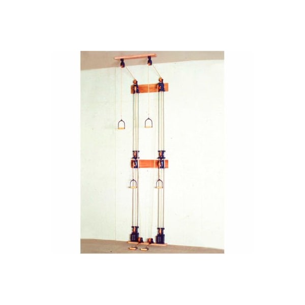 chest pulleys are an important part of many rehabilitation programs; these pulleys come with handles, weights, hardware indicated. The handle is mounted at chest height on single handle unit; chest and floor height on double handle unit; and chest, floor and shoulder height on triple handle unit (ceiling height of 10 feet is needed for triple handle); choose from single or dual tower set-ups. Simply select the weight level by inserting "pin" into weight stack at increments of 2 pounds. Exercisers are wheelchair accessible. The handles can be adjusted to any starting height; adjust the rope slip to lengthen or shorten the pulley rope. Additional weights and handles available. Triplex handle (lower, mid, upper) - two towers - 10 x 2.2 lb. Weights.