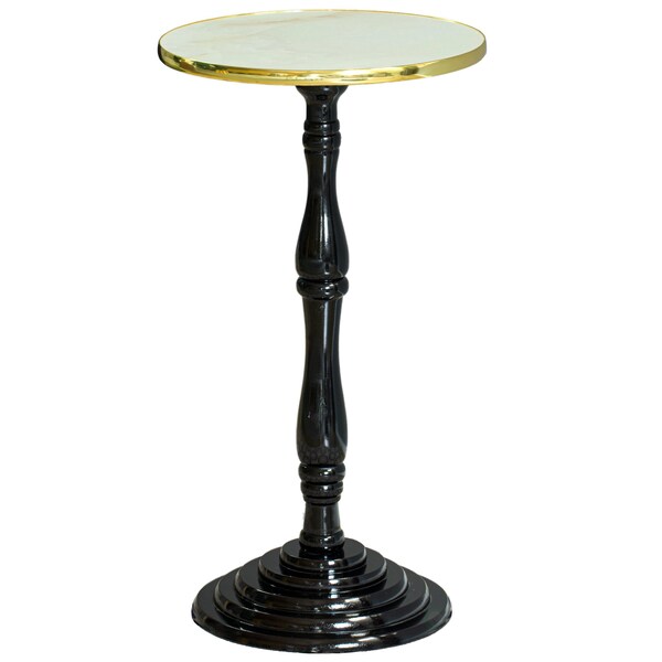 This Bold Tones accent decorative pedestal end table is the perfect accessory to complement any room. Designed in a round shape, its tall espresso wooden legs makes it a perfect place next to your sofa, The tabletop features a white glossy marble design with gold trim. The accent table is incredibly lightweight, making it easy to move around between rooms. Perfect for use in living rooms, bedrooms, dorm rooms, and more. this will add the perfect touch to your living room decor.