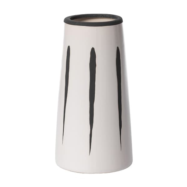 7 H Ceramic Modern Painted Brushstrokes Tapered Flower Table Vase, Black and White