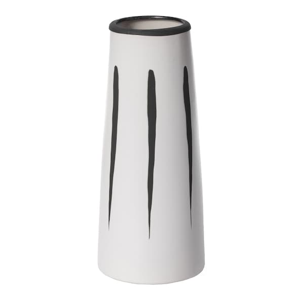 9.5 H Ceramic Modern Painted Brushstrokes Tapered Flower Table Vase, Black and White