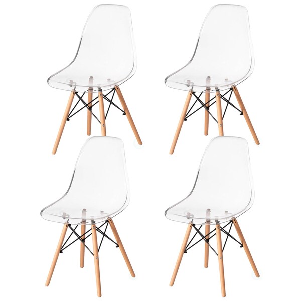 Dining Chair w/Wooden Dowel Eiffel Legs, DSW Transparent Plastic Shell Accent Chair, Clear, 4PK