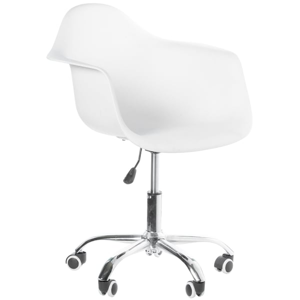 Mid-Century Modern Style Adjustable Swivel Plastic Shell Molded Office Task Chair w/ Rolling Wheels, White (Discontinued)