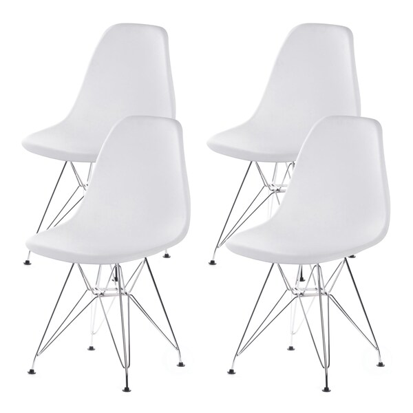 Embrace classic mid-century modern style with the timeless plastic shell dining chair design. Crafted with a one-piece molded plastic chair seat and back, this side chair is perhaps the most comfortable, practical, and durable seat you’ll ever sit upon. Made with recyclable polypropylene (PP) plastic in a matte, subtly textured finish, the chair seat is ergonomically molded to with bend resistant back support. Assembly is easy; the four metal solid wire legs come pre-assembled, so you will only need to screw them into place. Non-scratch leg caps will protect your floor from scratches and keep the chair evenly leveled. These armless chairs feature a basic modern minimalist design that looks especially great in Nordic, Scandi, and contemporary homes, but their simple clean design lets it fit in with any home décor theme. You’ll want them in every room in your house; kitchen, dinette, dining room, living room, study, or home office!