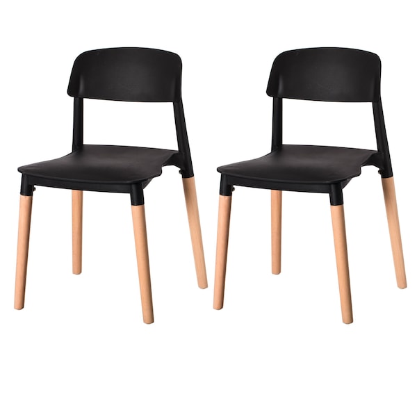 Modern Plastic Dining Chair Open Back with Beech Wood Legs, Black, PK 2