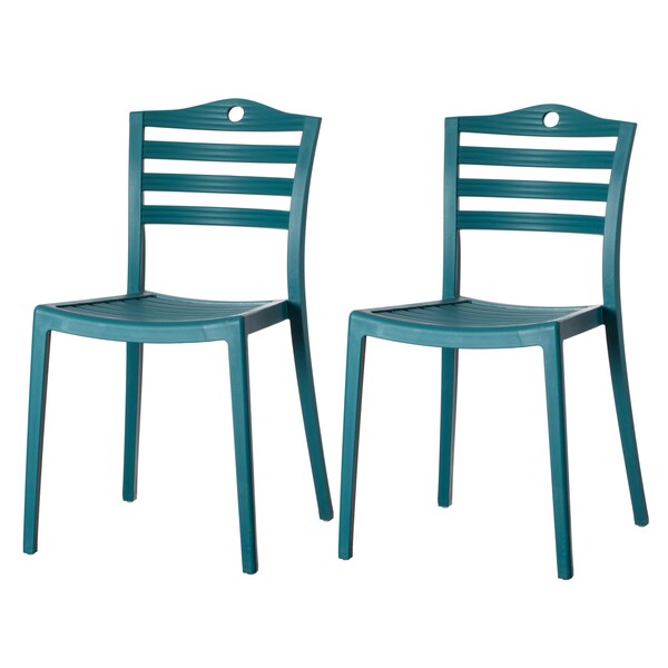 Modern Plastic Dining Chair with Ladderback Design, Blue, PK 2 (Discontinued)
