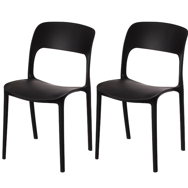 Modern Plastic Outdoor Dining Chair with Open Curved Back, Black, PK 2