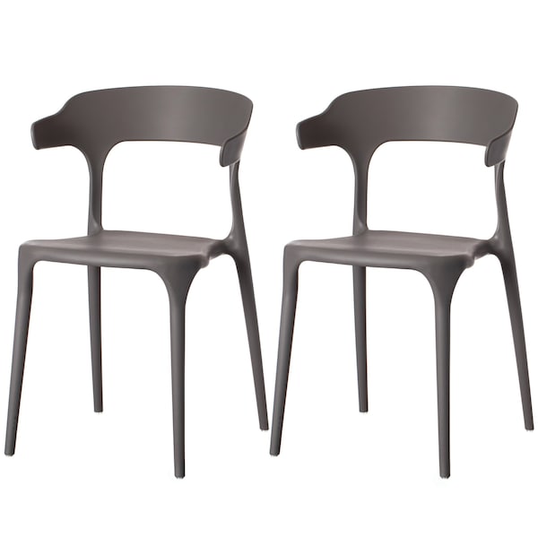 Modern Plastic Outdoor Dining Chair with Open U Shaped Back, Grey, PK 2