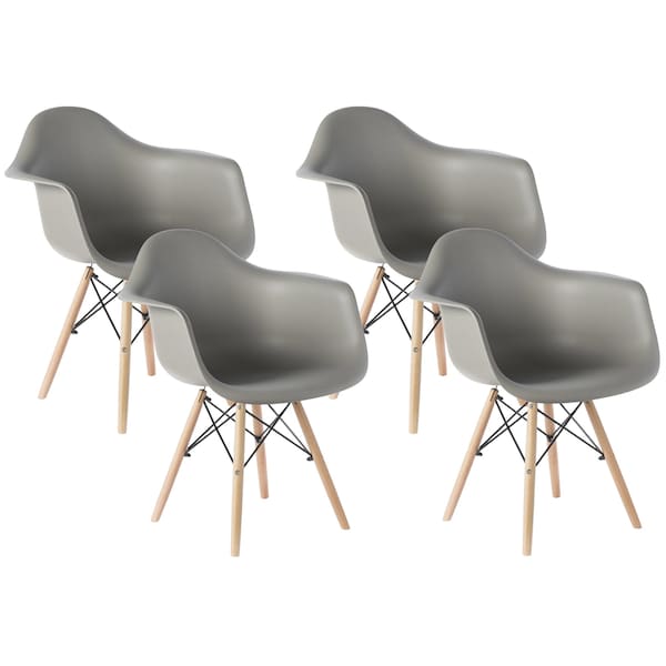 Plastic DAW Shell Dining Arm Chair with Wooden Dowel Eiffel Legs, Gray, PK 4