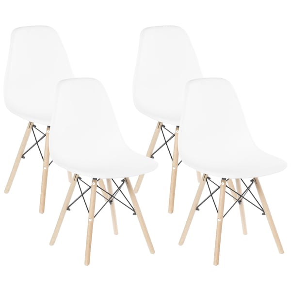 Plastic DSW Shell Dining Chair with Solid Beech Wooden Dowel Eiffel Legs, White, PK 4