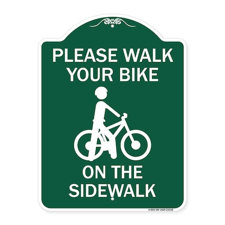 Pavement Stencil Please Walk Your Bike on Sidewalk, Green & White Alum, 18" x 24", GW-1824-23338