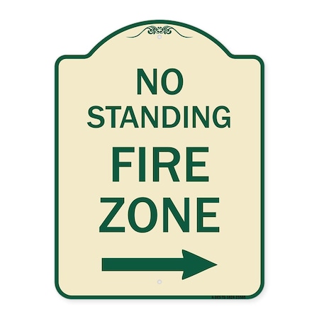 No Standing Fire Zone W/ Right Arrow Heavy-Gauge Aluminum Sign, 24" x 18", TG-1824-23585
