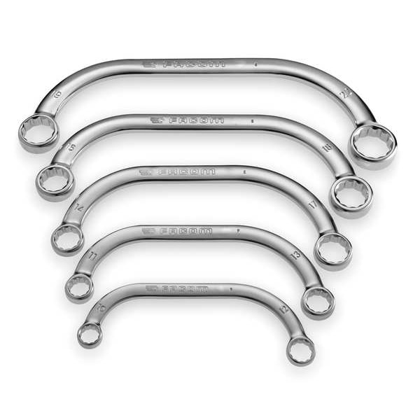 The FACOM FM-57.JE5 Box End Wrench Set is a highly versatile set of wrenches that are ideal for both professional and DIY use. It contains 5 pieces of box end wrenches in half moon shape, which are perfect for tightening or loosening nuts and bolts in tight spaces. This wrench set has 12-point alloy steel wrenches with half moon shaped heads. The offset angle of the wrench head is 15 degrees to provide excellent access to tight spots where other tools cannot reach. With this FACOM box end wrench set, you can work on everything from cars to motorcycles to bicycles, as well as most types of equipment used around the home or office. When it comes to working on automotive, mechanical and household appliances, nothing works better than the FACOM FM-57.JE5 Box End Wrench Set.