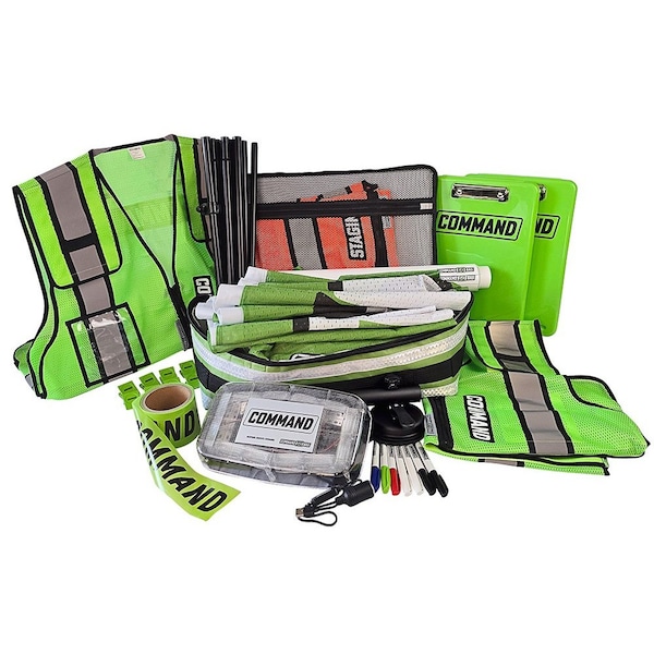 Incident Command GoBag Complete Kit, Green ICK, Including Command Flag Banner, Strobe & Accessories