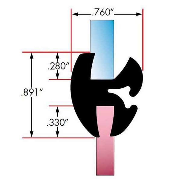 Locking Gasket, Style Double Piece (key Included), Fits Edge 0.173 in to 0.195 in, Length 25 ft, Min. Clearance Between Glass and Edge 0.3125 in, Fits Glass 3/16 in to 1/4 in, Material EPDM, Color Black