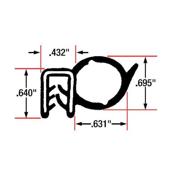 Trim Seal, Application Agriculture, Appliances, Construction, Electrical, Freight, Government, Industrial Machinery, Marine, Military, Rail, Stocked Products, Bulb Location Side, Color Black, For Material Thickness 0.137 in, Inside Height 11/16 in, Material EPDM, Maximum Operating Temperature 150 Degrees F, Minimum Operating Temperature -20 Degrees F, Outside Edge Trim Height Not Applicable, Outside Edge Trim Width 5/8 in, Overall Height 5/8 in, Overall Length 10 ft, Overall Width 1 1/16 in