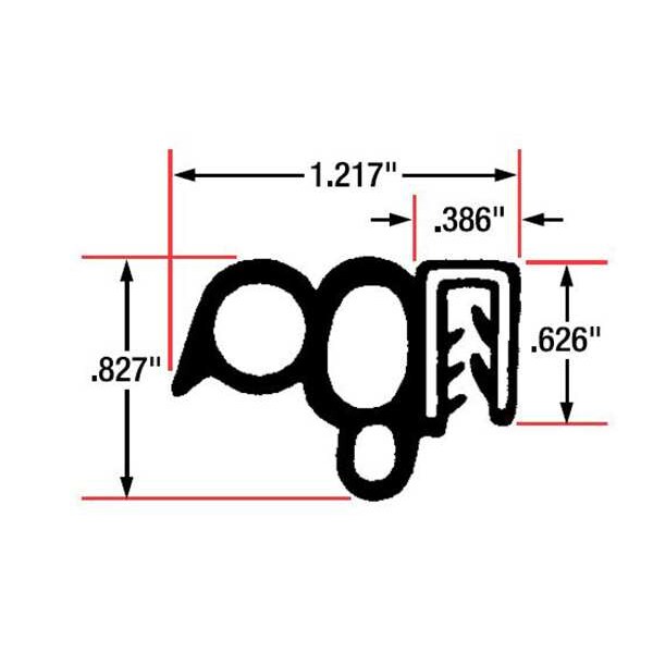 Trim Seal, EPDM, 10 ft Length, 1 3/16 in Overall Width, Style: Double Side Bulb