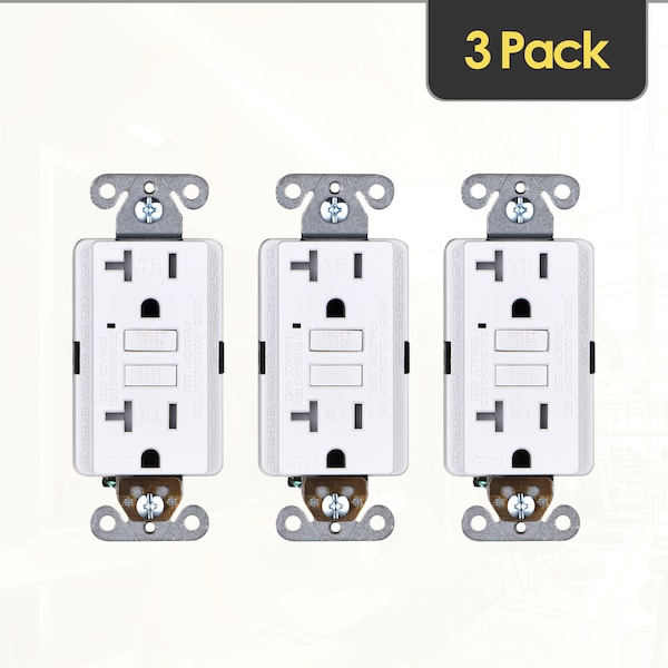 Self-Test 20A TR GFCI Outlet Receptacle, White, PK 3