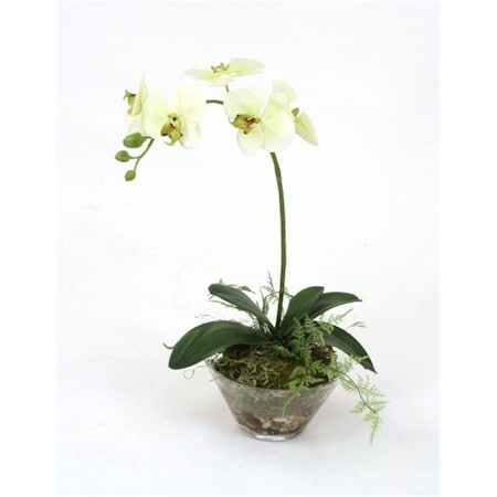 Waterlook Cream-Green Phaleanopsis Orchid with Fern in Glass Bowl