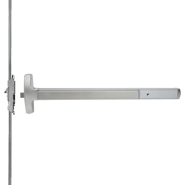 Grade 1 Concealed Vertical Rod Exit Bar, Narrow Stile Pushpad, 3' Door Width, 84 Door Height, Cylinder Plate, Electric Latch Retraction, Hex Key Dogging, Satin Chromium Plated Finish, Right Hand Reverse