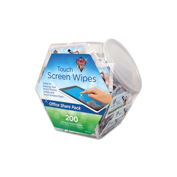 Dust-Off Touch Screen wipes are a great way to keep your mobile screens clean. Simply grab one or two and keep in your purse or pocket for whenever your device gets dirty. Safely and effectively cleans touch screens like smart phones and tablets. Also, great for laptops and monitors. 200 Individually Wrapped Wipes In An Easy Grab Jar. Towel/Wipe Type: Screen Wipes; Application: Screens; Dirt Types: Dust; Lint; Scent: Unscented.