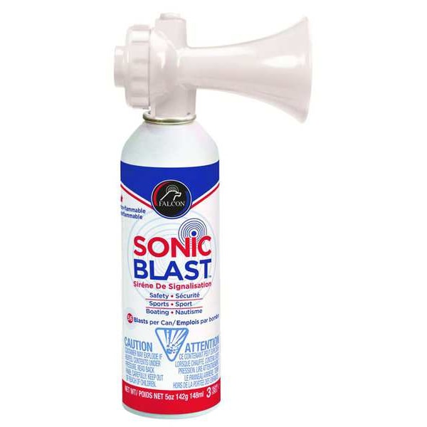 Personal Safety Horn, Coverage 39 ft, Sound Level 120 dB, Horn Material Plastic, Height 3 in, Length 7 1/2 in, Width 5 1/4 in, Propellant 1234ZE, Net Weight 5 oz, Operating Temp. 20 Degrees to 120 Degrees F, For Use With Alarm Systems, Personal Protection, Includes Refill Can