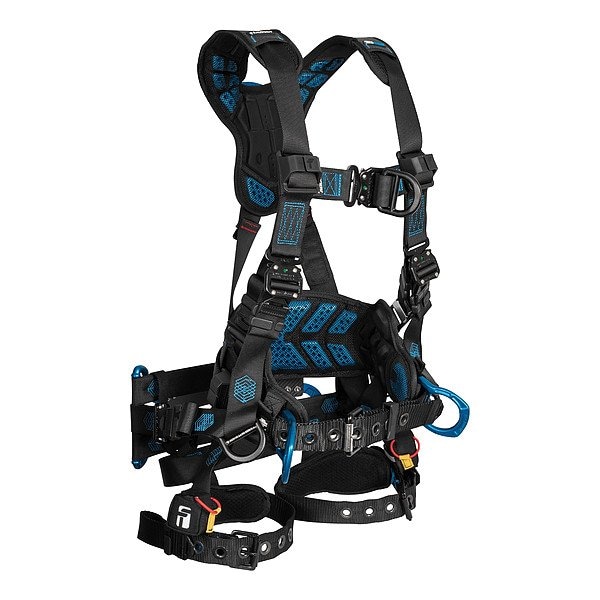 Tower Harness, Harness Style Vest, Specialty Working Conditions Not Applicable, Safety Features Belt, Trauma Strap, Chest Strap Buckles Quick-Connect, Harness Color Black/Blue, Harness D-Ring Material Aluminum, Harness Sizing M, Includes Padding Yes, Leg Strap Buckles Tongue, Torso Adjustment Cam, Weight Capacity 425 lb, Harness Application Climbing, D-Ring Locations Back, Chest, Hips, RFID Equipped No, Industry Tower, Wind Power, ANSI Standards Met ANSI Z359.11-2021