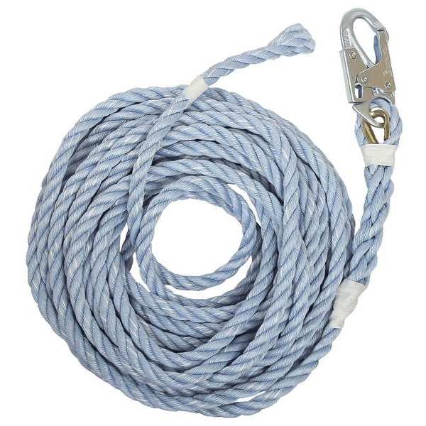 Vertical Lifeline, Color Blue, Weight Capacity 310 lb, Standards ANSI Z359.15-2014, OSHA 1926.502 and 1910.66, Rope Lifeline Component Rope Lifeline, For Use With PFAS or Restraint System, Hardware Material Steel, Workers per System 1, Tensile Strength 5,000 lb, Lifeline Length 50 ft, Lifeline Material Copolymer, Includes Snap Hook, Splice-Protecting Shrink Tube, Steel Thimble, Anchorage End Connection Snap Hook, Rope Diameter 5/8 in, Rope End Style Braided Rope, Series Vertical Lifelines