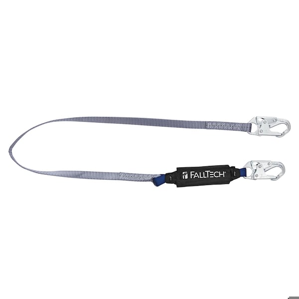 FallTech Shock Absorbing Lanyard, Series: ViewPack, 310 lb, 6 ft Length, Polyester Line, Alloy Steel Hardware, 1 Leg, Blue, 1 in Strap Width, 9800 lb Tensile, Snap Hook Anchorage Connection, Snap Hook Harness Connection Hook, OSHA CFR1926.502, OSHA CFR1910.66 Specifications Met