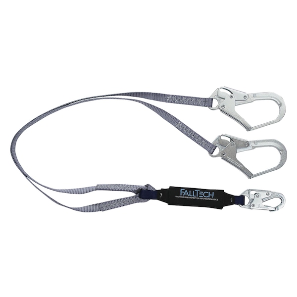 FallTech Shock Absorbing Lanyard, Series: ViewPack, 310 lb, 6 ft Length, Polyester Line, Alloy Steel Hardware, 2 Leg, 1 in Strap Width, 9800 lb Tensile, Rebar Hook Anchorage Connection, Rebar Hook Harness Connection Hook, ANSI Z359.13-2009, OSHA CFR 1926.502, OSHA CFR 1910.66 Specifications Met