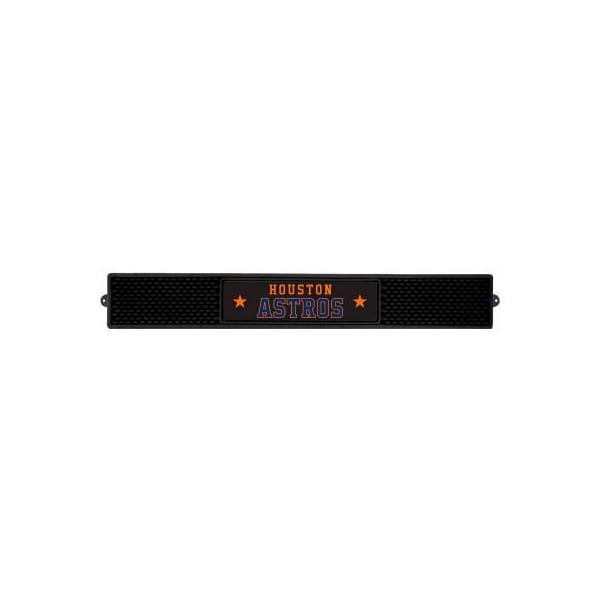 Fanmats drink mat, 20683, mlb - houston astros, 3-1/4"x 24"x 1" keep your freshly crafted drinks safe with sports licensing solutions officially licensed drink mats. Featuring your favorite team's name molded in 3d and true team colors, the drink mat is certain to add the finishing touch to any bar. With a sleek design, our rubber drink mat offers an affordable, practical and high quality solution to protecting your bar top surfaces. The drink mat will collect spilt liquid and condensation in its 1/4 inch deep wells. Easily clean any overflow by simply runner under the faucet with hot water. Ideal when serving pints and cocktails.