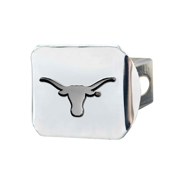 University of texas - 3-d chrome hitch cover 3-3/8" x 4" - 14999 keep your hitch clear of debris and let everyone see your favorite team with officially licensed hitch covers from fanmats. Fits all 2"/type iii hitches. Molded 3-d chrome logo and hitch cover are both made of real chrome metal. Attaches without use of tools and it's easy to take on and off. completely wraps your hitch to keep all debris out fits all 2 in. Class iii hitches for a secure installation made of chromed metal for a sleek design 3-d molded design to clearly outline the team logo attaches without use of tools for an easy on and off apply standard vehicle wax to keep hitch cover looking great for years to come
