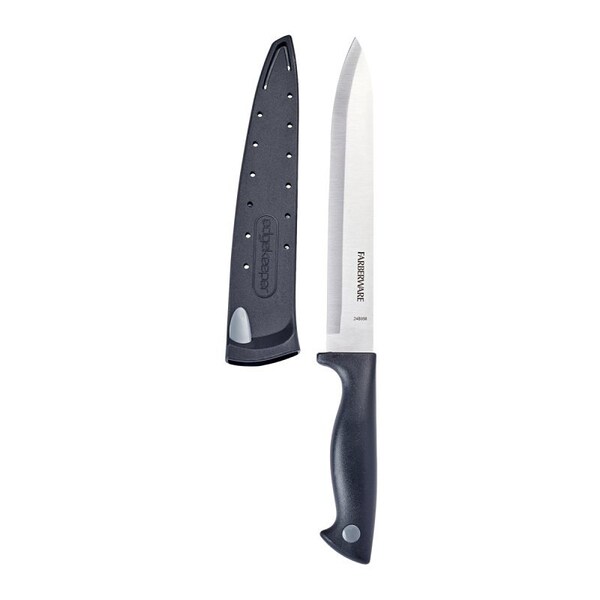 Farberware Slicer Knife, Plain Blade, Ergonomic Handle, 8 in L Blade, Handle Color: Black, Stainless Steel Blade, Polypropylene Handle, Includes: Self-Sharpening Sheath
