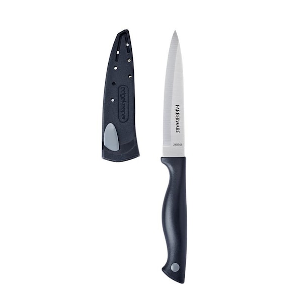 Farberware Utility Knife, Stainless Steel Blade, Silver Blade, 4-1/2 in L Blade, Polypropylene Handle, Handle Color: Black, Includes: Sharpening Sheath