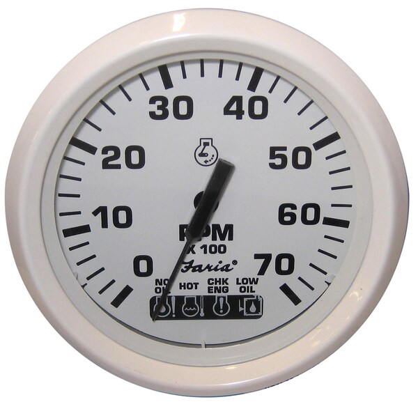 Dress White 4" Tachometer w/Systemcheck Indicator - 7,000 RPM (G