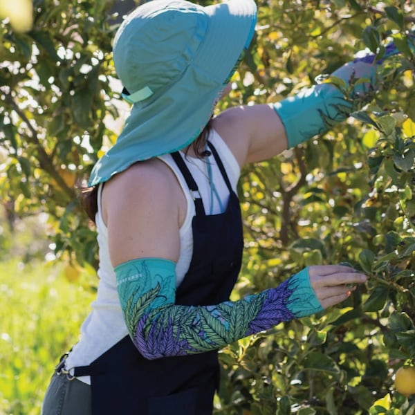 Protective sleeves that offer unparalleled protection of arms and skin for any farmer gardener or outdoor worker. Say goodbye to irritated skin and sunburns in the garden. These sleeves offer cooling comfort and protection against the elements outdoors. Made from REPREVEeco-dynamic fabric which is made from recycled materials. Features moisture-wicking qualities that keep you cool and dry. Includes an anti-slide rubber ring to keep the sleeve in place. 4-way stretch design provides comfort and a great fit. Also includes a thumb hole for comfort.