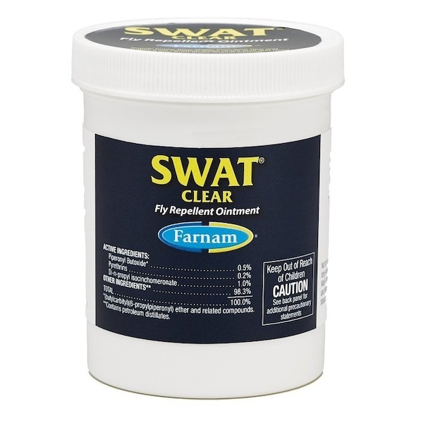 Farnam Fly Repellent Ointment, Liquid Form, White to Off-White, Moderate Pleasant Wood Odor/Scent, 7 oz Net Content, Compositions: Pyrethrins, Piperonyl Butoxide, Di-n-propyl Isocinchomeronate, Titanium Dioxide, 0.9 Specific Gravity, Spray Application Method