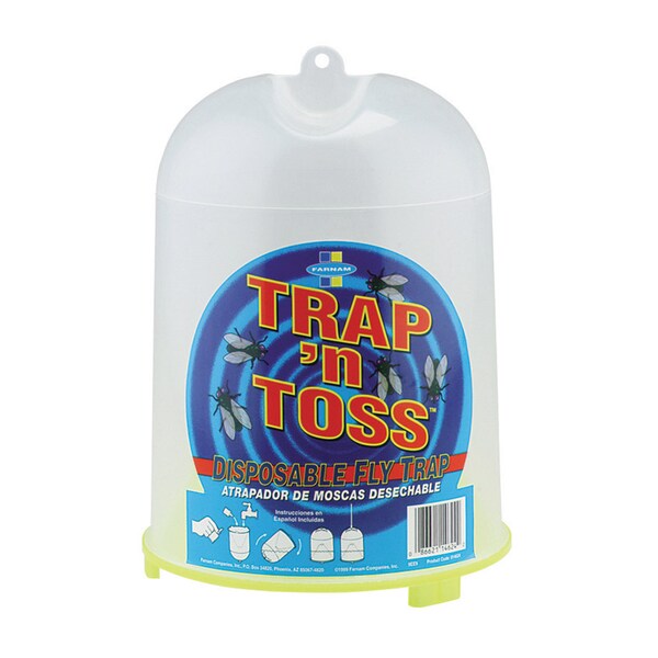 This handy, disposable fly trap complete with its own attractant holds thousands of flies. Trap ‘N Toss disposable fly trap can be hung up or set on the ground wherever flies are a problem. When it fills up with flies, just toss it out.