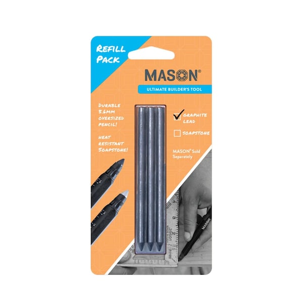 Make sure your Mason 6-in-1 Ultimate Builder's Tool is always ready for action with this convenient 3pk Graphite refill pack. These refills are 5.6mm x 90mm in size, perfect for marking on Wood, Concrete, Metal, Stone & more. Keep your tool in top shape and never run out of marking options!