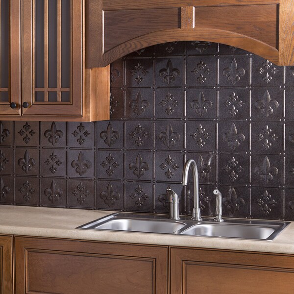 Fasade 18in x 24in Fleur-de-lis Smoked Pewter Backsplash Panel 5pk