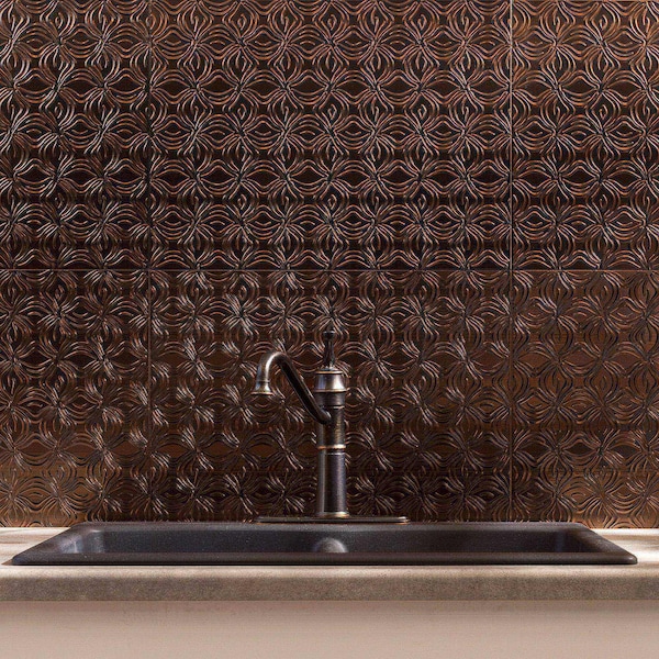 Fasade 18in x 24in Lotus Oil Rubbed Bronze Backsplash Panel 5pk