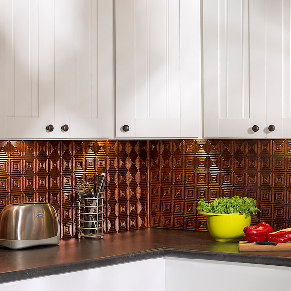 Fasade 18in x 24in Miniquattro Moonstone Copper Backsplash Panel 5pk