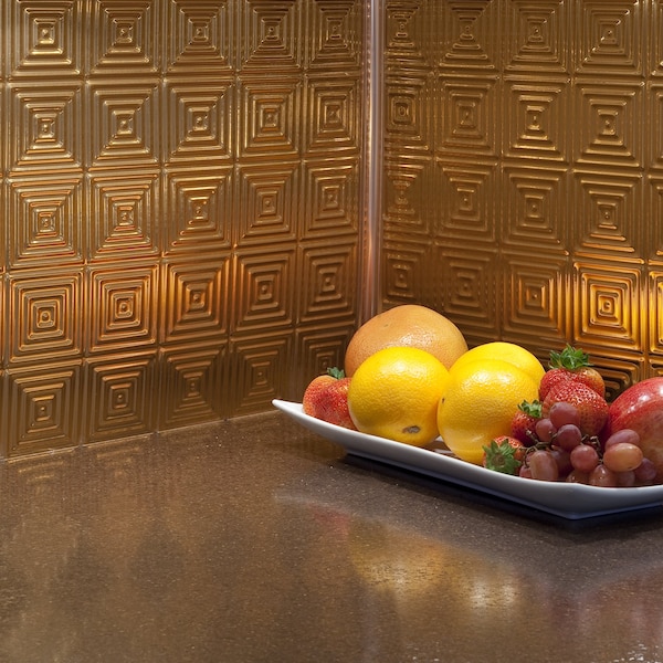 Fasade 18in x 24in Miniquattro Polished Copper Backsplash Panel 5pk