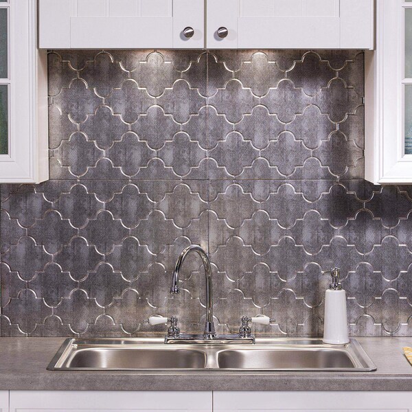 Fasade 18in x 24in Monaco Crosshatch Silver Backsplash Panel 5pk