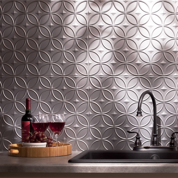 Fasade 18in x 24in Rings Argent Silver Backsplash Panel 5pk