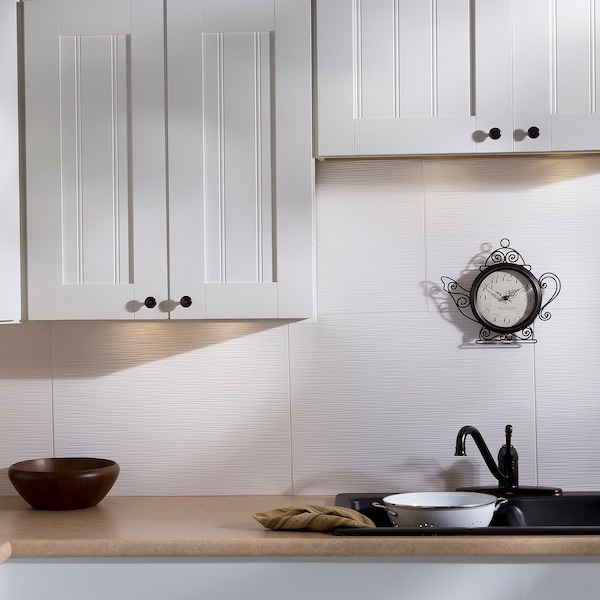 Fasade 18in x 24in Ripple Matte White Backsplash Panel 5pk